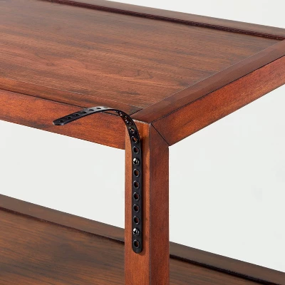 The 4-Shelf Wood & Cane Transitional Ladder Bookshelf from Hearth & Hand™ with Magnolia makes a stylish and functional addition to your living room or home office. Featuring a wooden frame in dark brown, this decorative bookcase has a ladder-style silhouette with four open shelves to hold your books, magazines, collectibles and more. You’ll appreciate the artistic touch the bottom shelf provides with its lovely woven cane pattern that adds to the overall design.