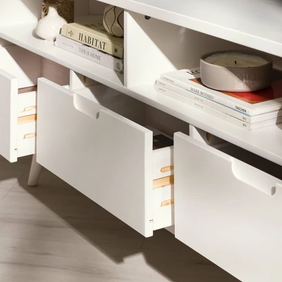 Be the first to review “Cara Mid-Century Modern 3 Drawer Corner TV Stand For TVs Up To 58″ – Saracina Home” Cancel reply
