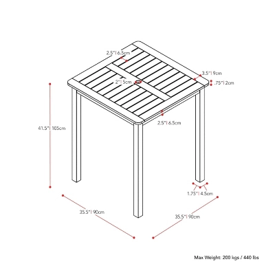 - Slatted design on tabletop stops water from pooling during summer storms