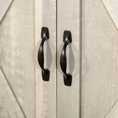 - With barn door sliding cabinet fronts for added style