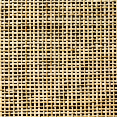- Cane-front cabinet doors create a pleasing sense of textural contrast